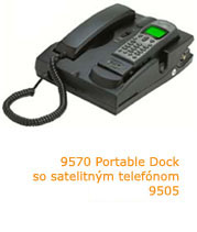 Motorola 9570 Portable Dock - prenosný dok zvyšuje varácie a komfort užívania série produktov Motorola Satellite Series™ pre modely 9500 a 9505. Do prenosného doku môžte vložiť 9505 prenosný telefón čím zvýhodníte príjem Iridium signálu (ak je k 9570 pripojená externá anténa), taktiež môžte zároveň nabíjať váš telefón. 9570 je vybavený doplnkovými batériami, čím sa predlžuje Váš hovorový alebo pohotovostný čas. (Poznámka: aby mohol byť 9505 prenosný telefón integorvaný do 9570 je nutné zakúpiť príslušný adaptér.)
